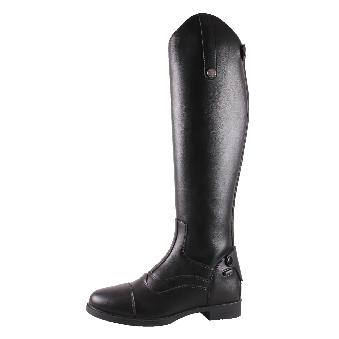 Flotte ridestøvler i vegansk skind til børn-juniorrytteren. Disse ridestøvler er i et flot syntetisk skind, som er meget praktisk og holdbart til børne-juniorrytteren. Ridestøvlerne har et flot og klassisk læderlook med en skjult lynlås bagpå. Elastik