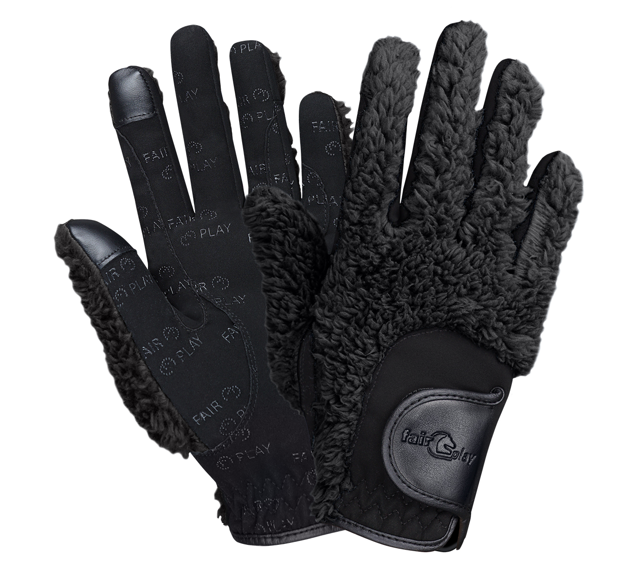 De blødeste vinter ridehandsker fra Fairplay:- håndryggen er lavet af varmt fleksibelt plysmateriale- håndfladen er lavet af kunstigt ruskind, dækket med et anti-slip print- justering af håndledsomkreds med velcro- touchscreen kompatibleFarv